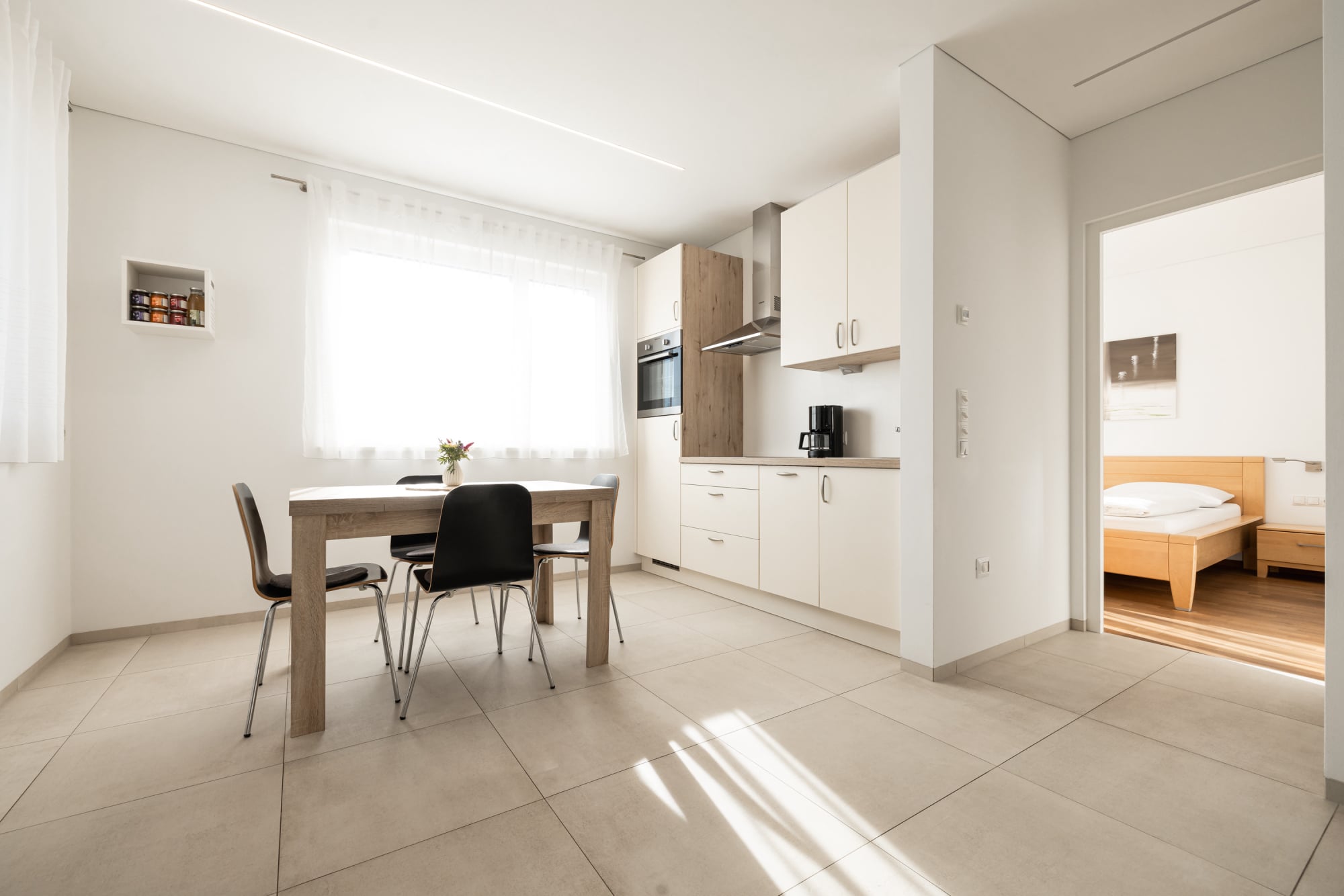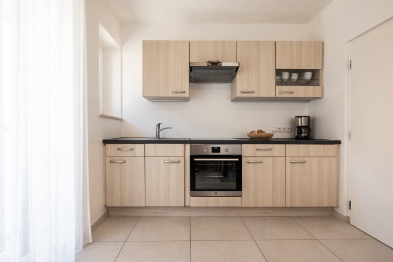 L’appartamento per ferie Cabernet si trova al pianoterra ed è composto da una camera da letto, una cucina abitabile, un bagno ed una piccola terrazza direttamente davanti all’appartamento.