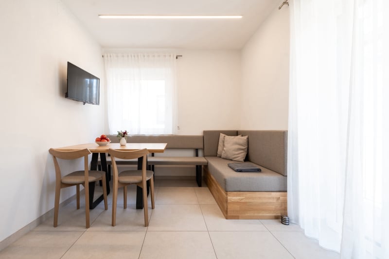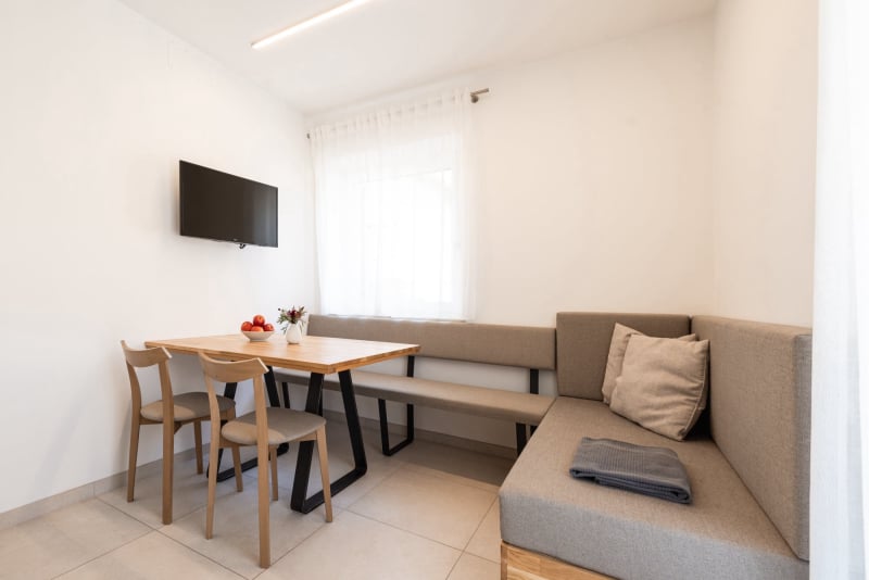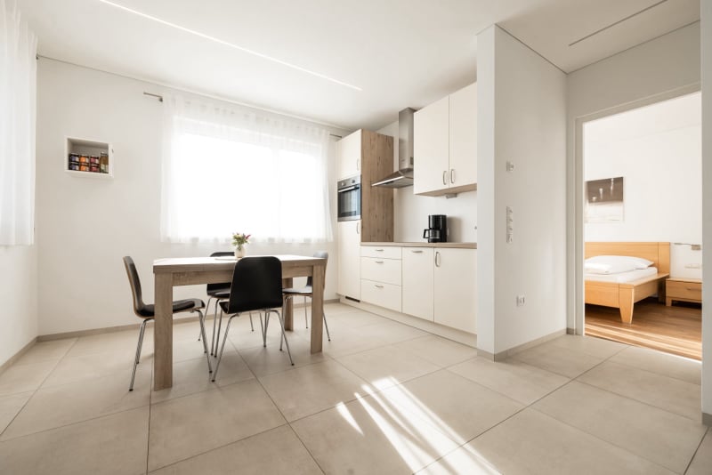 Il nuovo appartamento per ferie Marille si trova al primo piano ed è composto da una camera da letto, un’ampia cucina abitabile con divano-letto, un bagno ed un piccolo balcone direttamente davanti all’appartamento.